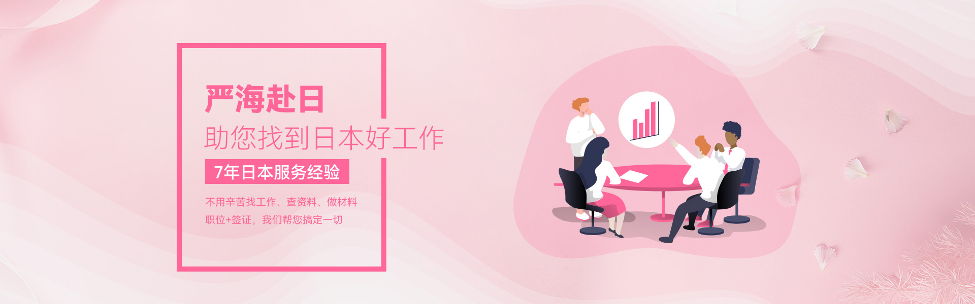 嚴(yán)海赴日(workinjapan.cn)是專業(yè)的赴日工作服務(wù)平臺,是大連嚴(yán)海人力資源有限公司旗下品牌。主要提供日本就職(工作簽)/日本留學(xué)(半工半讀),等最新工作信息和資訊,為想赴日工作的小伙伴們提供專業(yè)的、一對一的咨詢,為您職業(yè)生涯規(guī)劃、永居辦理、在日期間換職、轉(zhuǎn)換簽證等方面提供支援。